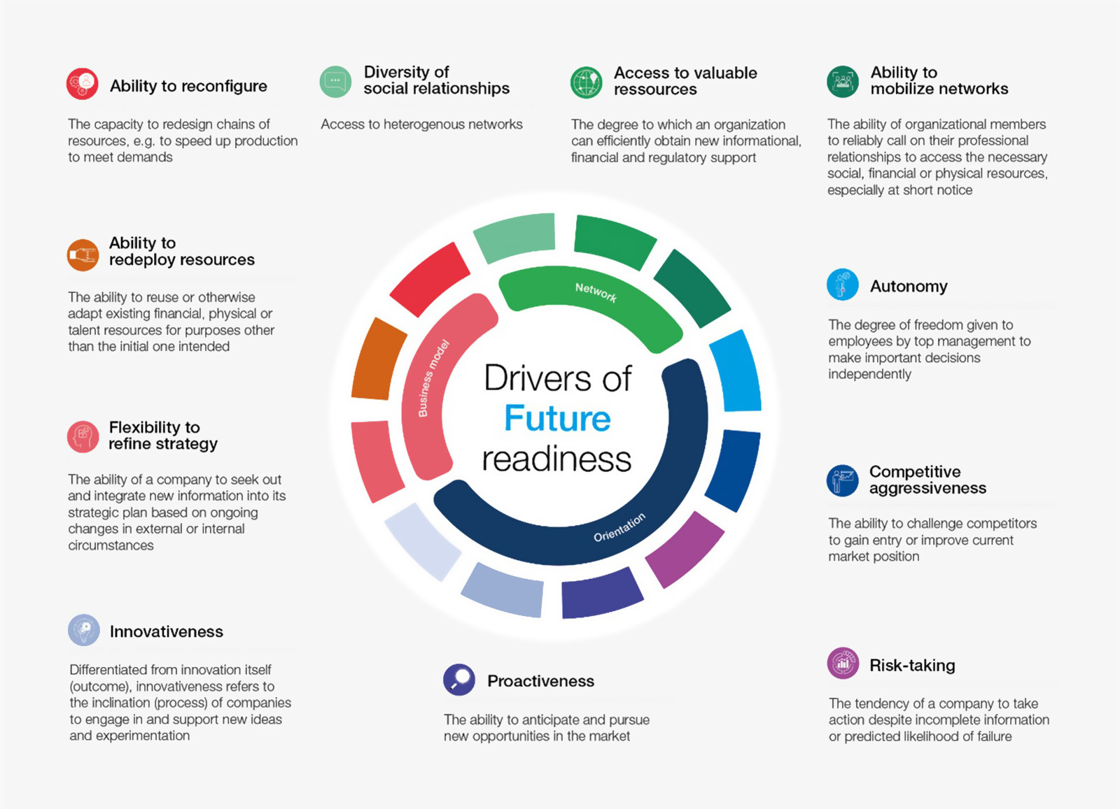 To enable SMEs and mid-sized companies to improve their chances of success while generating a positive impact in the future, they need to be future-ready. The ability to identify opportunities to enhance future readiness not only supports SMEs themselves, but society as a whole, in terms of job creation, inclusive growth, sustainable development, or all three. Future readiness is defined by the World Economic Forum as a set of organizational capabilities and orientations that enable companies to successfully respond to shocks and seize opportunities that emerge from constant disruption. To develop a comprehensive understanding of future readiness, the Forum applied several research methodologies and identified the following as the three core characteristics of future-ready SMEs: the ability to generate sustained growth; the ability to have a positive social and environmental impact; and the ability to remain resilient and agile in times of volatility. The Forum’s research also identifies three key drivers of future-readiness which include 1) orientation, the culture and style through which important decisions are taken, 2) business model flexibility and 3) the ability to establish and tap into valuable networks and connections. The Forum provides access to a self-assessment tool for SMEs to benchmark their future-readiness in comparison to their peers. This can be accessed here.